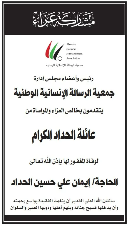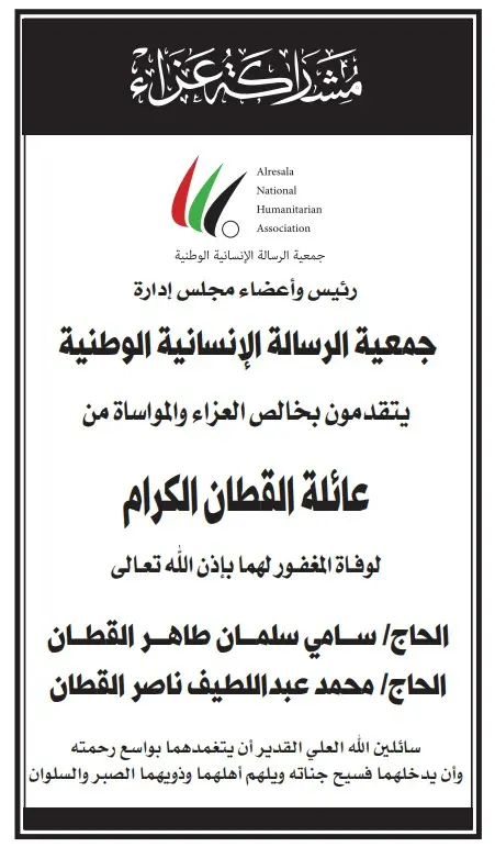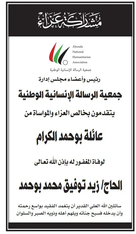 خطاب من الرئيس الفخري لجمعية الرسالة الوطنية الإنسانية
